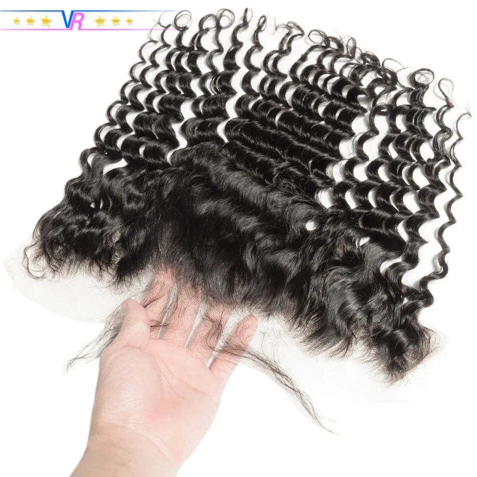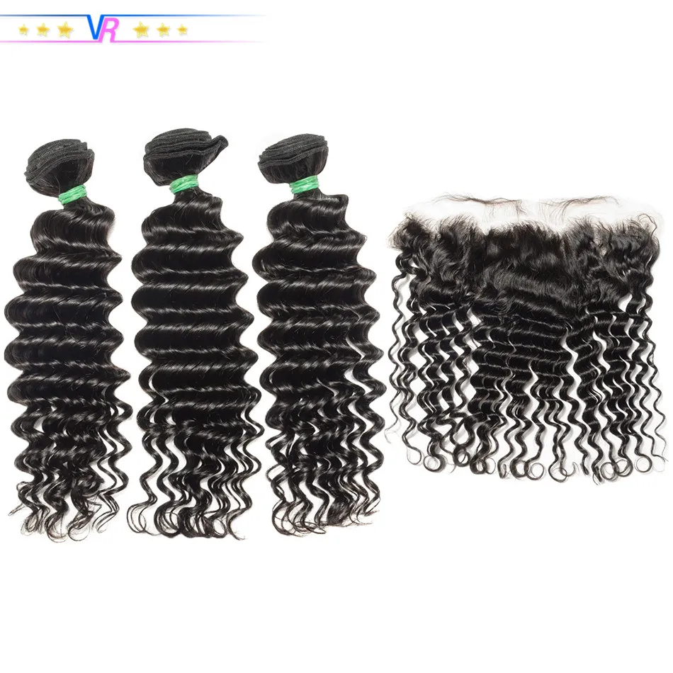 VR Star Quality Peruvian Deep wave Virgin Human Hair Bundles With 13x4 frontal Ear to Ear with Natu