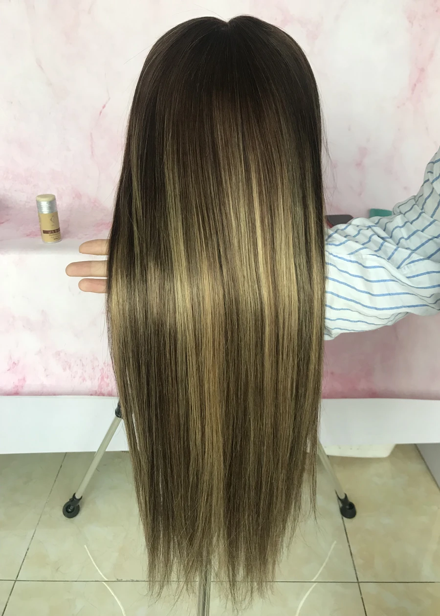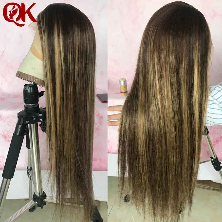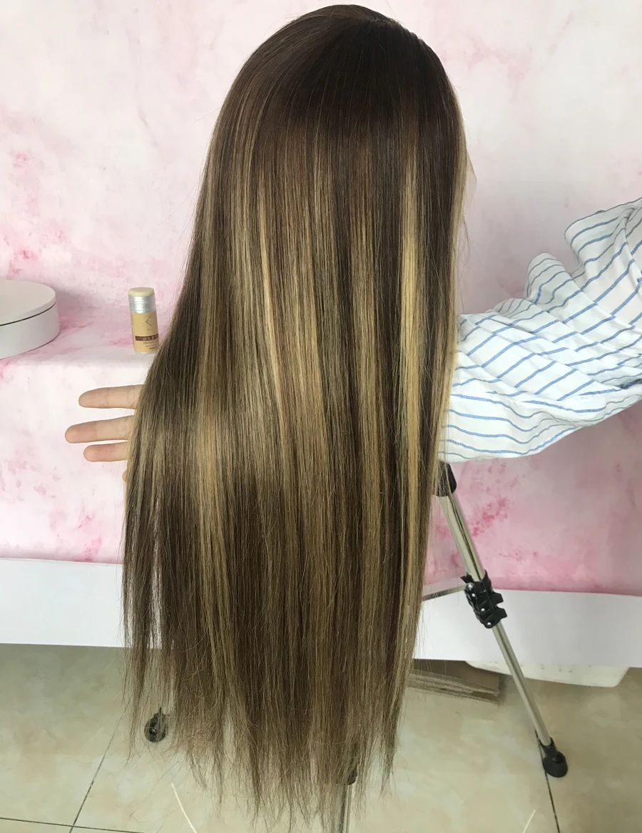 QueenKing hair Front Lace Wig 180% Density Cami Color Balayage Ombre Wigs T4/4/24 Brazilian Remy ha